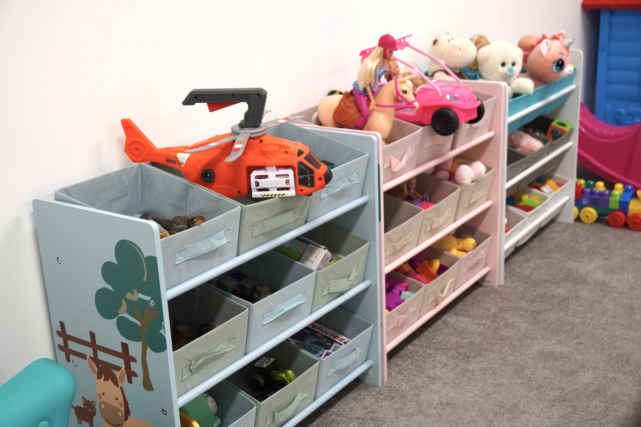 a fiúkat pedig Matchbox autók, Jurassic World és Minecraft figurák hívják játékra!