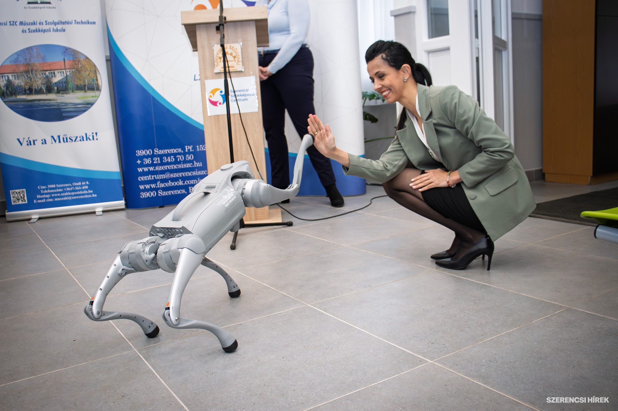 Az átadáson továbbá egy friss eszközbeszerzés eredményeképpen bemutatták az új, négylábú robotkutyát is. A Unitree Go2 Air típusú robot az informatikus képzésben kap kulcsszerepet, lehetőséget adva a diákoknak, hogy a gyakorlatban is elsajátítsák a legmodernebb technológiai ismereteket. A tanulók ezen a kifinomult gépen keresztül mélyedhetnek el az algoritmusok írásának világában, megismerhetik a szenzortechnika működését, és közvetlen tapasztalatot szerezhetnek a Python, valamint a C++ programnyelvek alkalmazásában. Ez a fejlesztés garantálja, hogy a Szerencsen végzett informatikusok a munkaerőpiacon is versenyképes, naprakész tudással rendelkezzenek. A négylábú robotkutyából három darabot szerzett be a centrum.